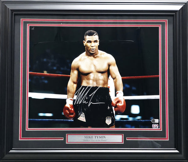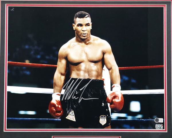 This is a Framed 16x20 Photo, approximately 24x28 with the frame, that has been hand signed by Mike Tyson. There is damage to this photo as shown. This item has been certified authentic by Beckett Authentication (BAS) and comes with their tamper-proof QR Code hologram.