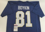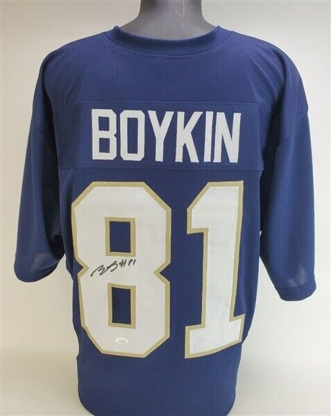 Custom on-field style jersey. Everything sewn on, size XL. Hand-signed in black felt tip pen by Miles Boykin. The lot / autograph(s) includes an official James Spence Authentication (JSA) hologram and matching COA for authenticity purposes. The signing of this item was witnessed by JSA.Authentication: JSA COA