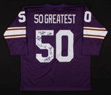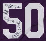 Custom on-field style jersey. Everything sewn on, size XL. Hand-signed in black felt-tip pen by John Gilliam, Doug Sutherland, Gene Washington, Stu Voigt, Henry Thomas and Kevin Williams. The lot / autograph(s) includes an official James Spence Authentication (JSA) hologram and matching COA for authenticity purposes. The signing of this item was witnessed by JSA.Authentication: JSA COA