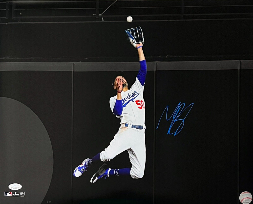 Mookie Betts Los Angeles Dodgers Signed Wall Catch Spotlight 16x20 Photo JSA