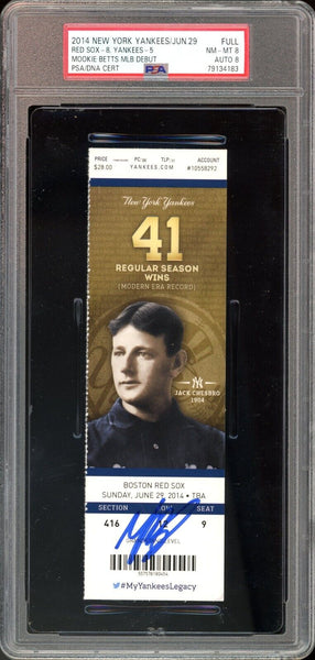 Mookie Betts Signed Red Sox 6/29/14 MLB Debut Full Season Ticket PSA 8/8 Auto