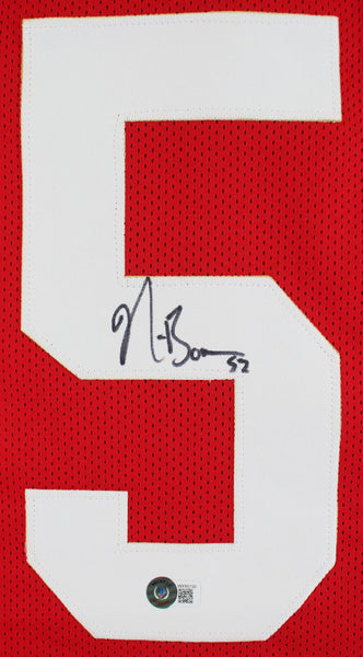 This Autographed Red Pro Style Jersey has been Personally Signed by Navorro Bowman of the San Francisco 49ers. This item is 100% Authentic to include a hologram by Beckett Authentication Services. This item may come with the new Beckett Authentication hologram that has a scannable QR code rather than the traditional COA. If you would like to have a COA, you are welcome to reach out to Beckett for a printed certification once you receive your item. This is a BAS Witnessed Protection Program item which means a Beckett Authentication Service representative was present when this item was being signed. We conducted an autograph signing with Navorro Bowman where multiples of the same item were signed. While the photographs are representative of this item, the size, placement and strength of the signature may vary. Each item is hand signed, therefore, each autograph is unique. This item can be verified through BAS Witnessed. This is a X-Large sized Jersey.