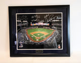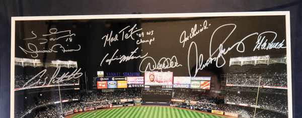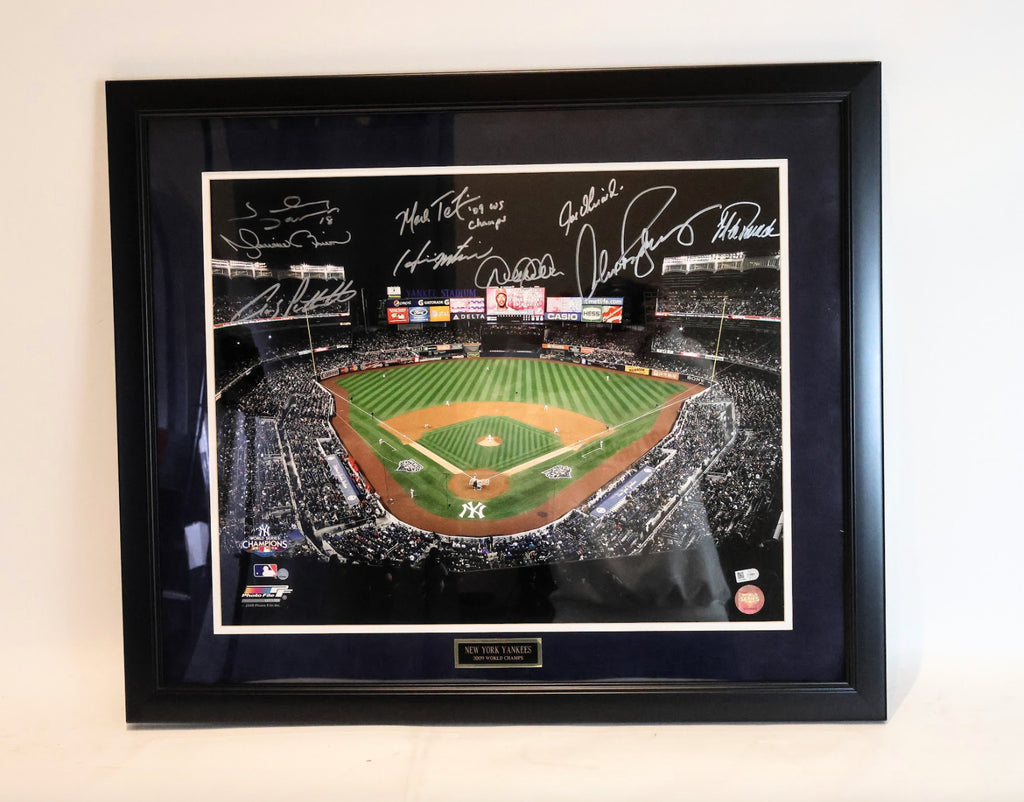New York Yankees 2009 World Champions Autographed Stadium Photo Photo of Yankee Stadium during Game 6 of the 2009 World Series 14x14 Photo Framed Signed by Jorge Posada, Mark Teixeira, Johnny Damon, Hideki Matsui, Mariano Rivera, Alex Rodriguez, Joe Girardi, Derek Jeter, Andy Pettitte Steiner Sports Authenticated