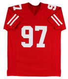 This Autographed Red Jersey has been Personally Signed by Nick Bosa of the San Francisco 49ers. This item is 100% Authentic to include a Certificate of Authenticity (COA) / hologram by Beckett Authentication Services. This item is 100% Authentic to include a hologram by Beckett Authentication Services. This item may come with the new Beckett Authentication hologram that has a scannable QR code rather than the traditional COA. If you would like to have a COA, you are welcome to reach out to Beckett for a printed certification once you receive your item. This is a BAS Witnessed Protection Program item which means a Beckett Authentication Service representative was present when this item was being signed. This is a stock item. You may receive a jersey signed on the #7 or #9. We conducted an autograph signing with Nick Bosa and we have several of these available. The one you will receive will be of equal quality to the one pictured. This item can be verified through BAS Witnessed. This is a X-Large sized, non-branded, custom-stitched Jersey.
