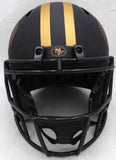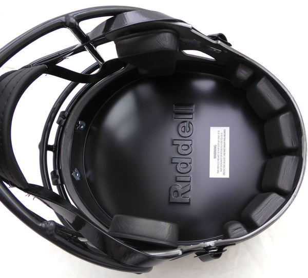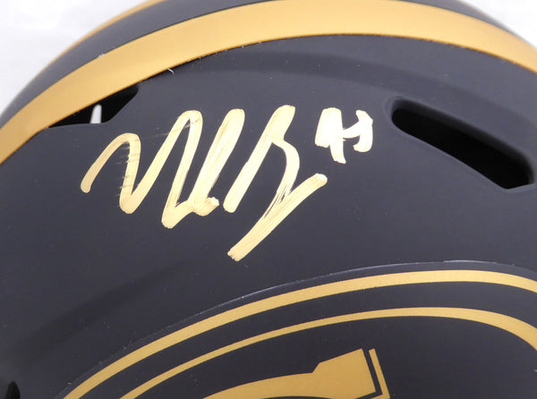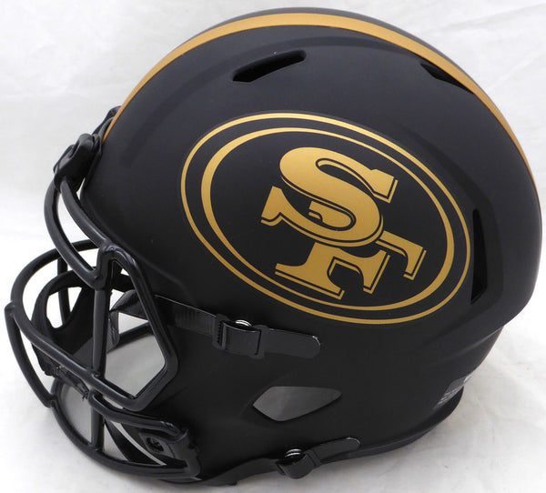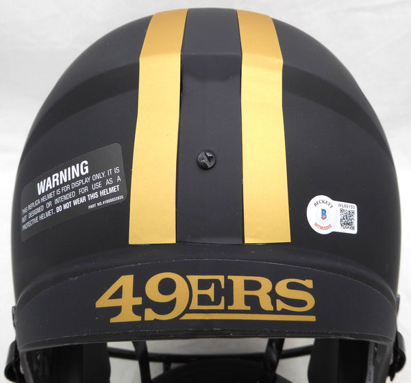 This is a Black Eclipse Full Size Speed Replica Helmet that has been hand signed by Nick Bosa. There is a smudge in the signature as shown. This item has been certified authentic by Beckett Authentication (BAS) and comes with their tamper-proof QR Code sticker that can be verified on the Beckett-authentication.com.