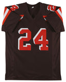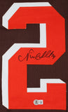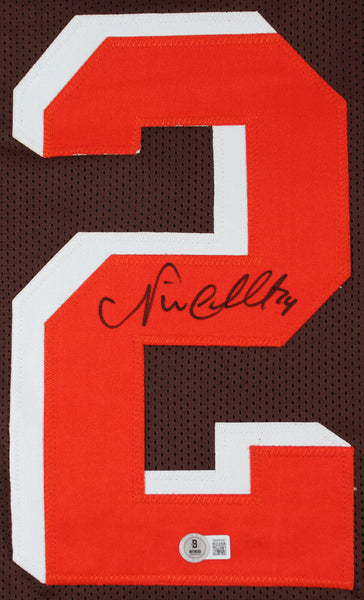 This Autographed Brown Color Rush Pro Style Jersey has been Personally Signed by Nick Chubb of the Cleveland Browns. This item is 100% Authentic to include a hologram by Beckett Authentication Services. This item may come with the new Beckett Authentication hologram that has a scannable QR code rather than the traditional COA. If you would like to have a COA, you are welcome to reach out to Beckett for a printed certification once you receive your item. This is a BAS Witnessed Protection Program item which means a Beckett Authentication Service representative was present when this item was being signed. We conducted an autograph signing with Nick Chubb where multiples of the same item were signed. While the photographs are representative of this item, the size, placement and strength of the signature may vary. Each item is hand signed, therefore, each autograph is unique. This item can be verified through BAS Witnessed. This is a X-Large sized, non-branded, custom-stitched Jersey.