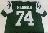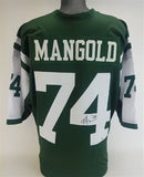 This autographed jersey has been personally hand-signed by Nick Mangold of the New York Jets.This autograph is certified by Beckett Authentication Services (BAS) Witness Certification. That means that a Beckett representative was present when this item was signed. It comes with the numbered authentication hologram with a QR code that verifies the authentication on the Beckett website.Custom on-field style jerseys are a more affordable option for autograph seekers. These jerseys do not have any brand name or tags and are made in the Philippines. They feature stitched on names and numbers and are made to look very similar to the on-field jerseys that the players wear. These custom jerseys are very commonly used in the memorabilia industry.