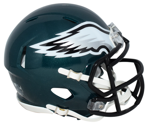 Nick Sirianni, head coach of the Philadelphia Eagles, has hand signed this Eagles Riddell Speed mini helmet with the Super Bowl LIX decal on the back side. This item is authenticated by Beckett Authentication Services and was signed in the presence of one of their representatives. Their tamper-evident hologram featuring a QR code and serial number is on the item. The authenticity can be verified online by entering the serial number or scanning the QR code.Item pictured may not be the exact item you will receive. It will be similar quality, and we guarantee your satisfaction.