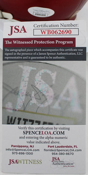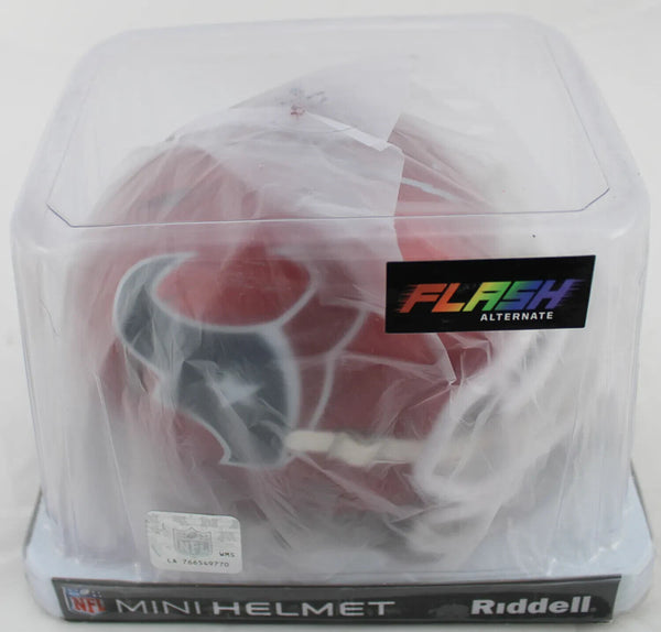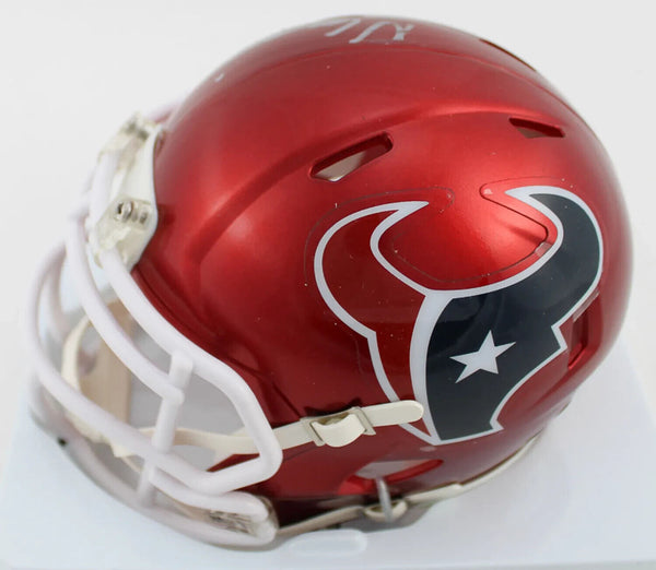 This autographed Riddell Flash Alternate Speed mini helmet has been personally hand-signed by Nico Collins of the Houston Texans.This autograph is certified by James Spence Authentication's (JSA) Witnessed Protection Program. That means that a JSA representative was present when this item was signed. It comes with the numbered hologram and matching Certificate of Authenticity.