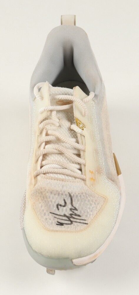 Under Armour baseball cleat. Hand-signed by Nico Hoerner (Chicago Cubs). Please note, there is residue throughout the cleat.The lot / autograph(s) includes an official James Spence Authentication (JSA) hologram and QR Code card for authenticity purposes.Authentication: JSA Hologram with QR Code card