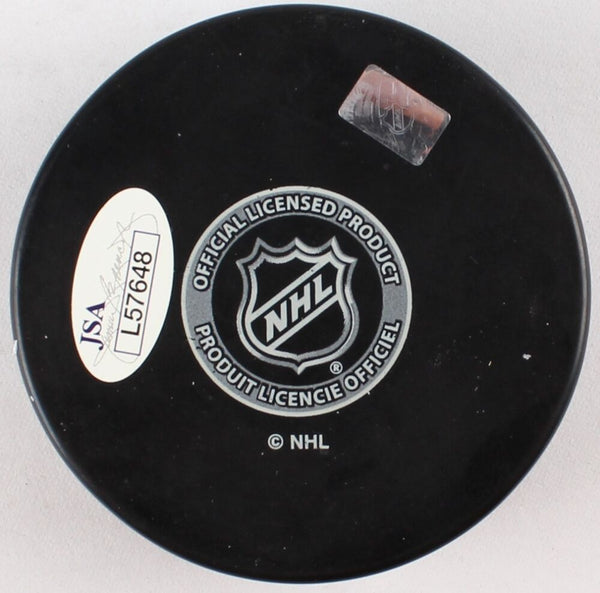 Detroit Red Wings logo hockey puck. Hand-signed in silver paint pen by Niklas Kronwall. The autograph includes an official James Spence Authentication (JSA) hologram for authenticity purposes.Authentication: JSA Hologram