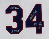 A Texas Rangers Nike Authentic Cool Base White MLB Jersey hand signed by Nolan Ryan. The item and signature are in excellent condition. In addition to signing his name, Nolan also inscribed "324 Wins, 5714 K's and 7 No Hitters" on the item. Nolan is an 8x All Star, a World Series champion, and an 11x strikeout leader. AUTHENTICATION: The item is accompanied by a Ai-Verified Certificate of Authenticity - Ai-Verified Serial Numbered and Databased Hologram