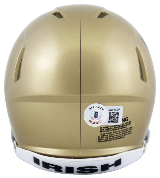 This Autographed Speed Mini Helmet W/ Uv Mirrored Back Acrylic Display Case has been Personally Signed by Michael Mayer of the Notre Dame Fighting Irish. This item is 100% Authentic to include a hologram by Beckett Authentication Services. This item may come with the new Beckett Authentication hologram that has a scannable QR code rather than the traditional COA. If you would like to have a COA, you are welcome to reach out to Beckett for a printed certification once you receive your item. This is a BAS Witnessed Protection Program item which means a Beckett Authentication Service representative was present when this item was being signed. We conducted an autograph signing with Michael Mayer where multiples of the same item were signed. While the photographs are representative of this item, the size, placement and strength of the signature may vary. Each item is hand signed, therefore, each autograph is unique. This item can be verified through BAS Witnessed.