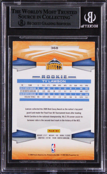 This Autographed 2009 Panini #368 Rookie Card has been Personally Signed by Ty Lawson of the Denver Nuggets. This item is 100% Authentic, it comes slabbed and authenticated by Beckett Authentication Services. The authenticity can be verified on Beckett Authentication Services website.