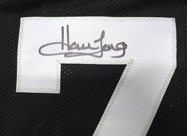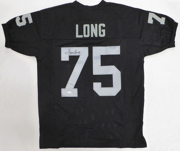 This is a Black Jersey that has been hand signed by Howie Long. This is a custom jersey with no name brand. The approximate size is XL. It has nice sewn in name and numbers. This item has been certified authentic by Beckett Authentication (BAS) and comes with their tamper-proof QR Code hologram.