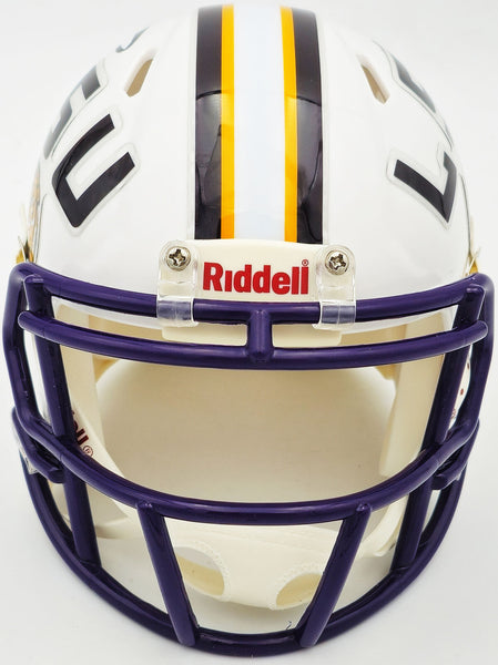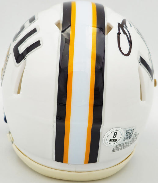 This is a LSU Tigers White Speed Mini Helmet that has been hand signed by Odell Beckham Jr. This item has been witnessed and certified authentic by Beckett Authentication (BAS) and comes with their tamper-proof witness hologram.