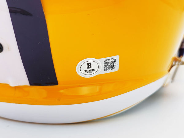 This is a LSU Tigers Yellow Full Size Speed Replica Helmet that has been hand signed by Odell Beckham Jr. This item has been witnessed and certified authentic by Beckett Authentication (BAS) and comes with their tamper-proof witness hologram.