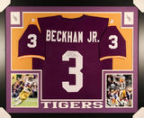 Custom frame measures approximately 43" x 35" in size and features a jersey hand-signed in black felt-tip pen by Odell Beckham Jr. (Giants). The autograph includes an official James Spence Authentication (JSA) hologram and matching COA for authenticity purposes.Authentication: JSA COA * Due to oversized shipping, the bidding on this lot is open to United States and Canadian ship to addresses only. The shipping cost for this lot will be a flat $50 for the continental United States and a flat $150 for Canada, Alaska, and Hawaii
