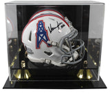 This Autographed 1975-80 Throwback Speed Mini Helmet W/ Uv Mirrored Back Acrylic Display Case with the inscription of "HOF 06" has been Personally Signed by Warren Moon of the Houston Oilers. This item is 100% Authentic to include a hologram by Beckett Authentication Services. This item may come with the new Beckett Authentication hologram that has a scannable QR code rather than the traditional COA. If you would like to have a COA, you are welcome to reach out to Beckett for a printed certification once you receive your item. This is a BAS Witnessed Protection Program item which means a Beckett Authentication Service representative was present when this item was being signed. We conducted an autograph signing with Warren Moon where multiples of the same item were signed. While the photographs are representative of this item, the size, placement and strength of the signature may vary. Each item is hand signed, therefore, each autograph is unique. This item can be verified through BAS Witnessed.