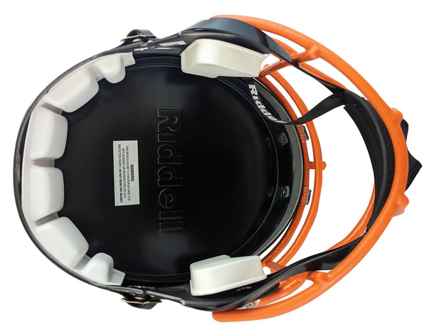 This Autographed Black Riddell Full Size Speed Rep Helmet has been Personally Signed by Barry Sanders & Thurman Thomas of the Oklahoma State Cowboys. This item is 100% Authentic to include a hologram by Beckett Authentication Services. This item will come with the new Beckett Authentication hologram that has a scannable QR code rather than the traditional COA. If you would like to have a COA, you are welcome to reach out to Beckett for a printed certification once you receive your item. This is a BAS Witnessed Protection Program item which means a Beckett Authentication Service representative was present when this item was being signed. We conducted an autograph signing with Barry Sanders & Thurman Thomas where multiples of the same item were signed. While the photographs are representative of this item, the size, placement and strength of the signature may vary. Each item is hand signed, therefore, each autograph is unique. This item can be verified through BAS Witnessed.