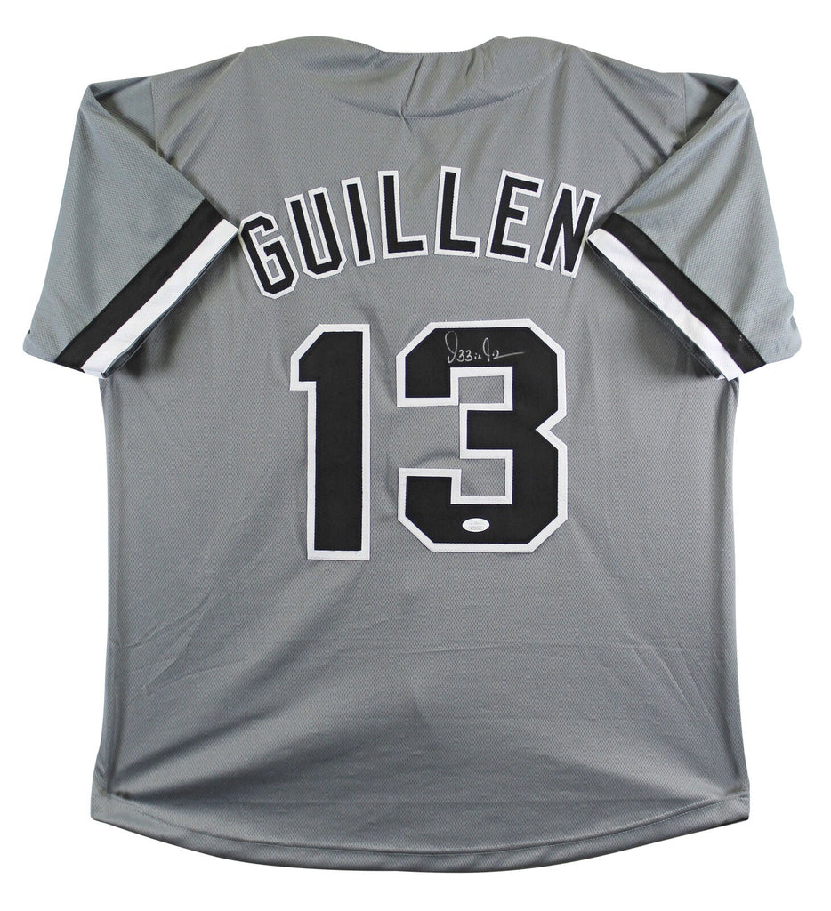 This Autographed Grey Pro Style Jersey has been Personally Signed by Ozzie Guillen of the Chicago White Sox. This item is 100% Authentic to include a Certificate of Authenticity (COA) / hologram by JSA Witness or Beckett Witness. This is a Beckett Witnessed or JSA Witnessed Protection Program item which means a Beckett or JSA representative was present when this item was being signed. This item will come with the new Beckett Authentication hologram that has a scannable QR code rather than the traditional COA. If you would like to have a COA, you are welcome to reach out to Beckett for a printed certification once you receive your item. This is a stock item in which we have several available. We have taken part in multiple autograph signings with Ozzie Guillen where multiples of the same item were signed. While the photographs are representative of this item, the size, placement and strength of the signature may vary. Each item is hand signed, therefore, each autograph is unique. This item can be verified through BAS Witnessed or JSA Witnessed. This is a X-Large sized, non-branded, custom-stitched Jersey.