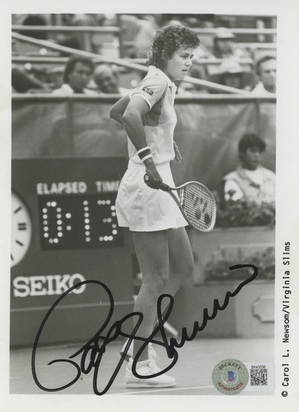 This Autographed 8x10 Photo has been Personally Signed by Pam Shriver. This item is 100% Authentic to include a hologram by Beckett Authentication Services. This item will come with an affixed Beckett Authentication Services (BAS) authentication sticker, which includes a scannable QR code to verify authenticity. Please note that Beckett no longer provides serial-numbered COA cards, and the attached BAS sticker will serve as the complete authentication for this item. The authenticity can be verified on Beckett Authentication Services website.