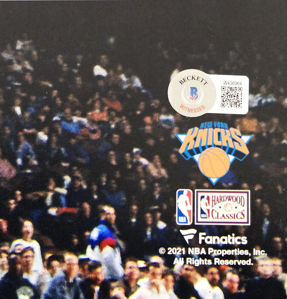 This is a 16x20 Photo that has been hand signed by Patrick Ewing. This item has been witnessed and certified authentic by Beckett Authentication (BAS) and comes with their tamper-proof witness sticker. Beckett Authentication has recently changed their physical certificate card policy where they no longer match their tamper-proof sticker with a physical certificate. A certificate can be printed on Beckett's website for the matching authentication number.