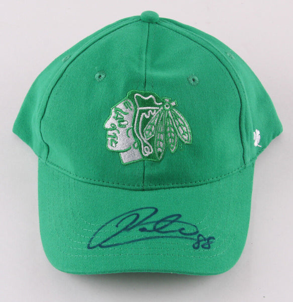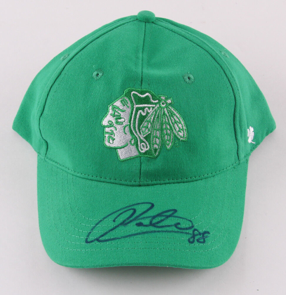 Adjustable snap back hat has been hand-signed in blue felt-tip pen by Patrick Kane. The lot / autograph(s) includes an official James Spence Authentication (JSA) hologram and matching COA for authenticity purposes.Authentication: JSA COA