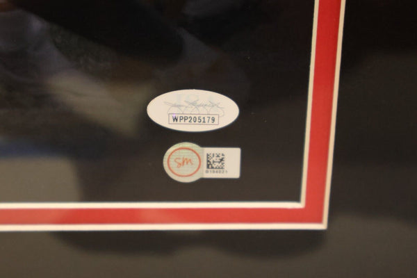 Patrick Mahomes Autographed 16x20 Photo - Kansas City Chiefs Star Quarterback Own a piece of NFL history with this autographed 16x20 photo of Patrick Mahomes, signed by the Kansas City Chiefs quarterback himself. The photo is matted and framed (23"x26") and comes with a JSA COA, ensuring its authenticity. Perfect for any football fan or collector, this original piece is a must-have addition to any collection. Product Highlights: Authentic Signature: Hand-signed by NFL superstar Patrick Mahomes Premium Quality: High-resolution 16x20 photograph Professional Framing: Matted and framed 23"x26" - ready for display JSA Authentication: COA guarantees signature authenticity Investment Grade: Perfect for serious collectors and investors Display Ready: Arrives ready to hang and showcase About Patrick Mahomes: Patrick Mahomes has revolutionized the quarterback position with his incredible arm talent, creativity, and leadership. The Kansas City Chiefs superstar has already achieved remarkable success including NFL MVP, Super Bowl MVP, and multiple Super Bowl championships. Known for his no-look passes, sidearm throws, and clutch performances, Mahomes has established himself as one of the most exciting and dominant players in the NFL. Perfect For: NFL memorabilia collectors Kansas City Chiefs fans Patrick Mahomes enthusiasts Football history enthusiasts Investment portfolio addition Gift for football fans Showcase your love for the sport and the Kansas City Chiefs with this stunning autographed photo. Whether you're displaying it in your home or office, this piece is sure to be a conversation starter. Don't miss out on the opportunity to own a piece of NFL history. Photo Specifications: 16x20 inches | Matted and framed 23"x26" | JSA Certificate of Authenticity | Ready for display Condition Note: This framed piece is pre-owned and being sold "as is" with a small scratch on the top frame piece (see photos)