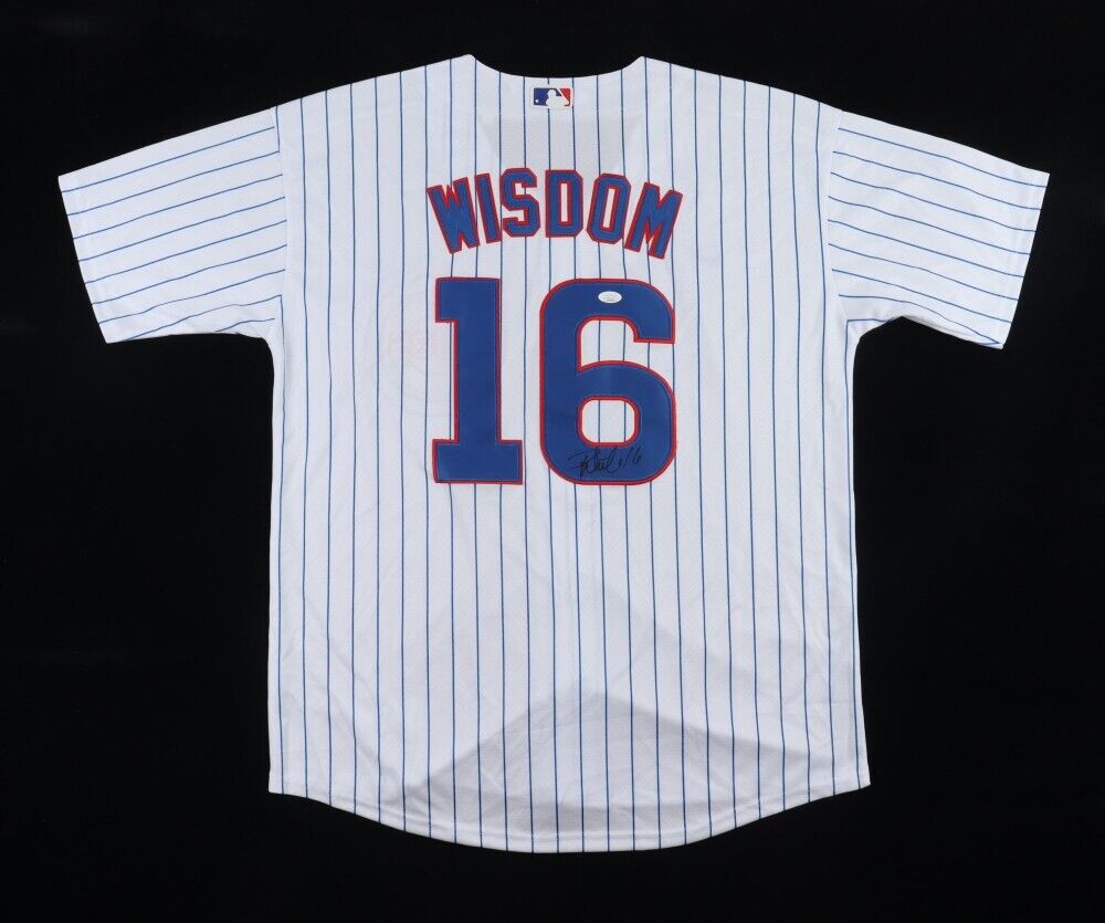 Chicago Cubs Pinstriped Nike style jersey everything is sewn on, size adult XL. Has been hand-signed by Patrick Wisdom (Chicago Cubs).The autograph includes an official James Spence Authentication (JSA) hologram and matching COA for authenticity purposes.Authentication: JSA COA