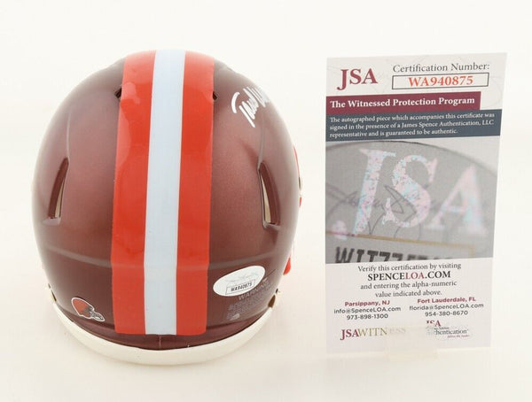 Riddell Cleveland Browns flash alternate speed mini helmet has been hand-signed and inscribed by Paul Warfield (HOF).The autograph(s) includes an official James Spence Authentication (JSA) hologram and matching COA for authenticity purposes. The signing of this item was witnessed by JSA.Authentication: JSA COA