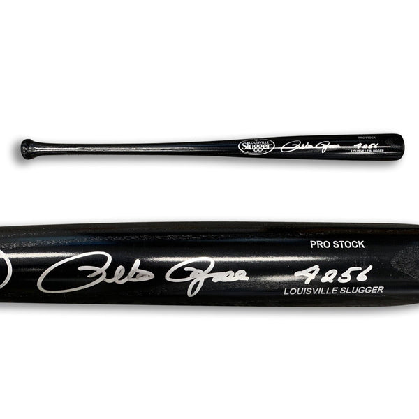 The Pete Rose Autographed 34" Baseball Bat is a remarkable collectible for any baseball fan or memorabilia collector. Hand-signed by Pete Rose the all-time MLB hits leader this bat features the inscription "4256" commemorating his incredible career achievement. The autograph comes with a JSA Certificate of Authenticity (COA) ensuring its authenticity. This full-sized bat is a perfect display piece honoring one of baseballGCOs most iconic figures. Whether youGCOre adding to your collection or celebrating RoseGCOs legendary career this autographed bat is a must-have for any serious sports memorabilia enthusiast.Stock image.