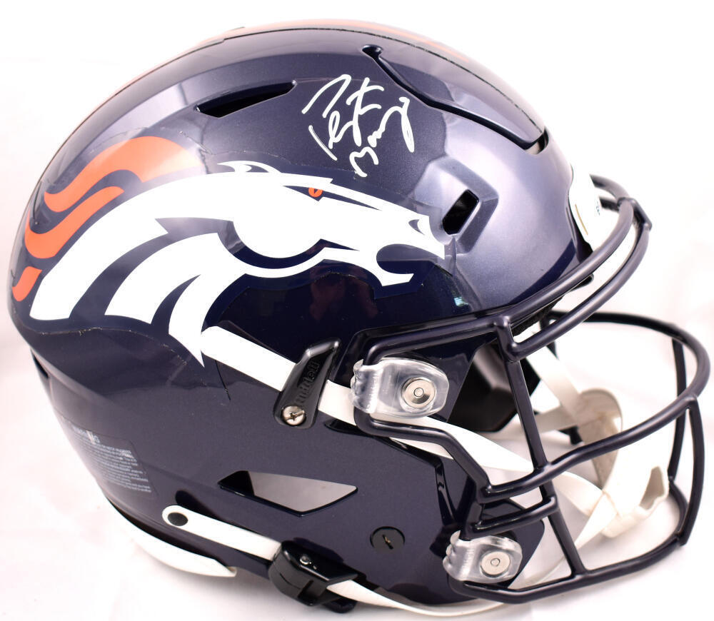 Peyton Manning Autographed Broncos Speed Flex F/S Authentic Helmet- Fanatics *White This is a Peyton Manning of the Denver Broncos hand autographed Riddell Football Full Size Speed Flex Authentic Helmet. This item has a Fanatics Authentication, which comes with a numbered sticker hologram and a QR code for verification. You can view this item on the Fanatics Authentication website and it shows when and where the item was signed. It was signed either at a public autograph appearance or a private signing. This is a stock photo of the item. Although you may not receive this exact item, the item you receive is virtually identical, brand new, and in great shape.