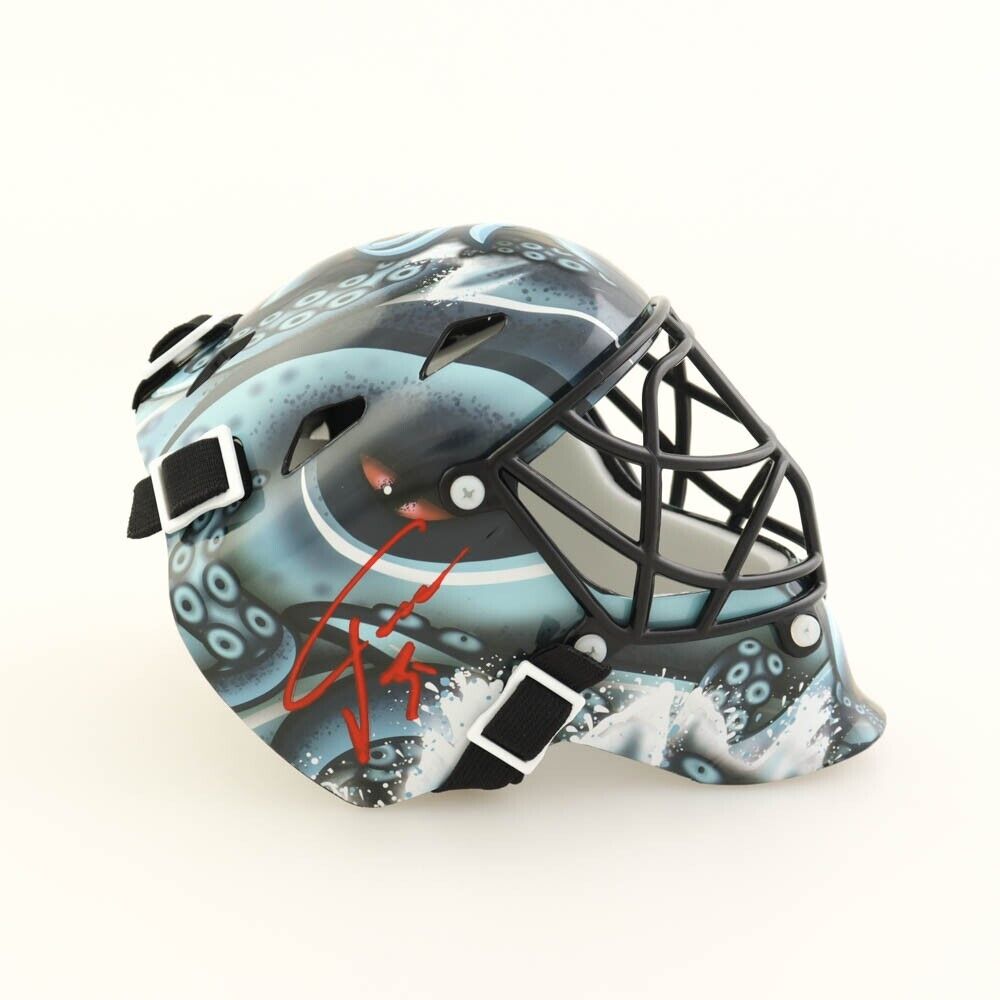 Seattle Kraken mini hockey goalie mask. Hand-signed by Philipp Grubauer.The lot / autograph(s) includes an official Fanatics hologram for authenticity purposes.Authentication: Fanatics Hologram