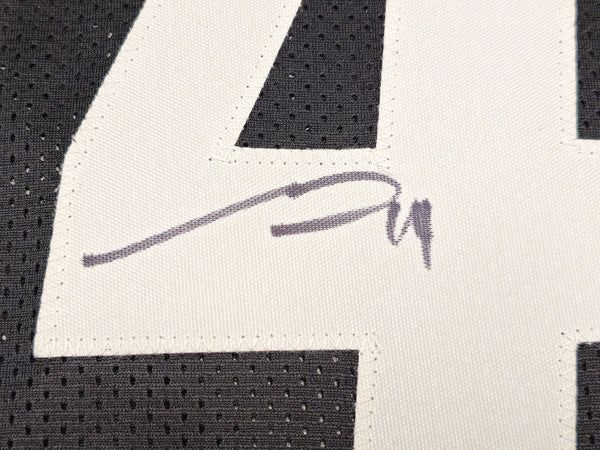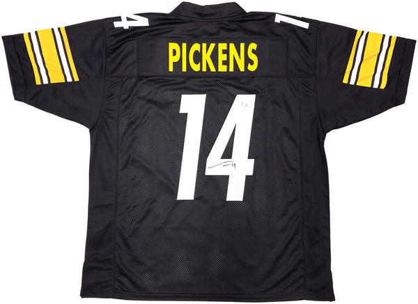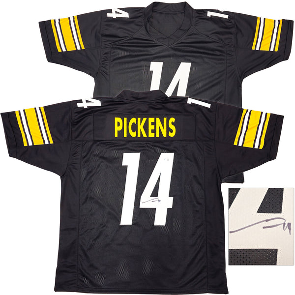 This is a Black Jersey that has been hand signed by George Pickens. This is a custom jersey with no name brand. The approximate size is XL. It has nice sewn in name and numbers. This item has been certified authentic by Beckett Authentication (BAS) and comes with their tamper-proof QR Code sticker that can be verified on beckett-authentication.com.