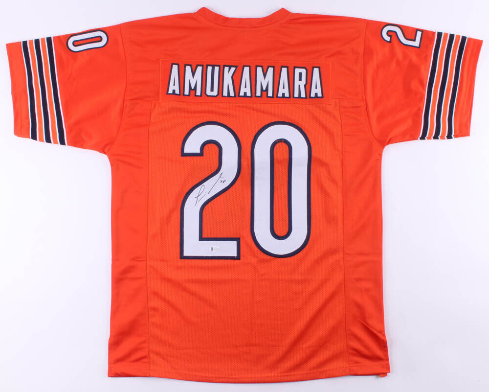 Custom on-field style jersey. Everything is sewn on, size XL. Has been hand-signed in black felt-tip pen by Prince Amukamara. The lot / autograph(s) includes an official Beckett Authentication Services serially-numbered hologram and matching COA for authenticity purposes. The signing of this item was witnessed by Beckett.Authentication: Beckett COA
