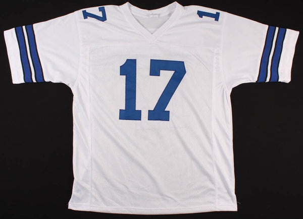 Custom on-field style jersey. Everything is sewn on, size XL. Has been hand-signed in silver paint pen by Quincy Carter. The lot / autograph(s) includes an official James Spence Authentication (JSA) hologram and matching COA for authenticity purposes.Authentication: JSA COA
