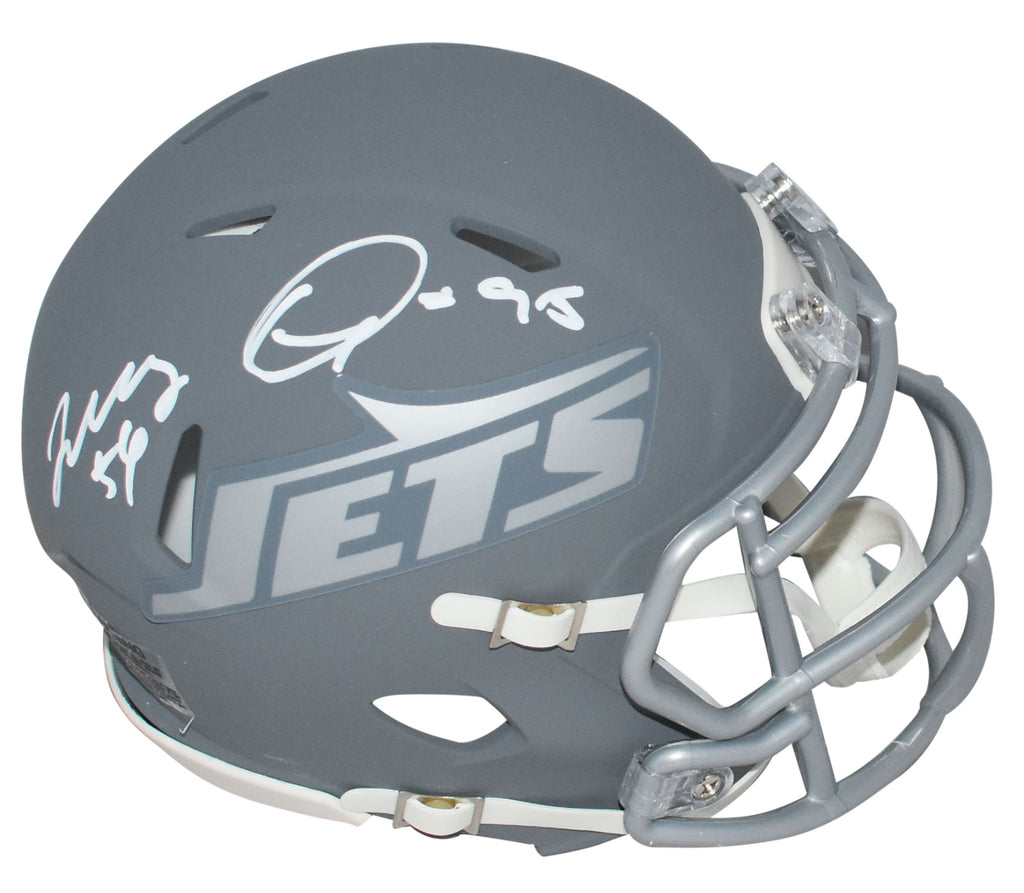 Quinnen and Quincy Williams, All-Pro brothers for the New York Jets, have each hand signed this Jets Riddell Speed Slate mini helmet at a private signing. This item is authenticated by Beckett Authentication Services and was signed in the presence of one of their representatives. Their tamper-evident hologram featuring a QR code and serial number is on the item. The authenticity can be verified online by entering the serial number or scanning the QR code.Item pictured may not be the exact item you will receive. It will be similar quality, and we guarantee your satisfaction.