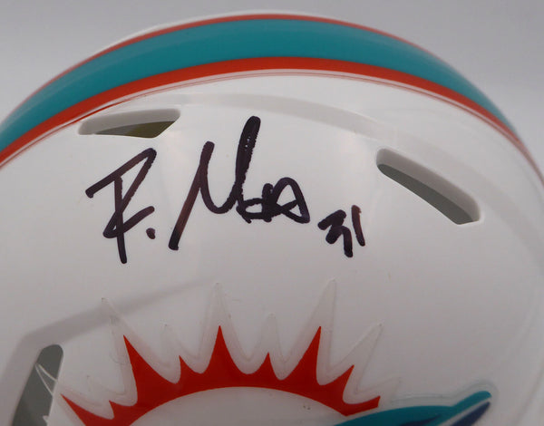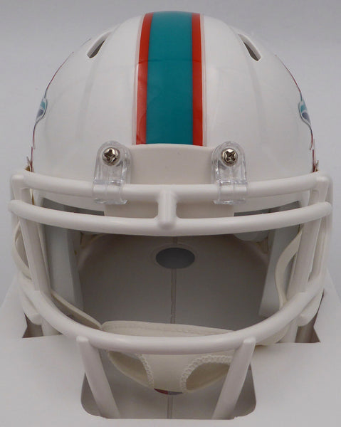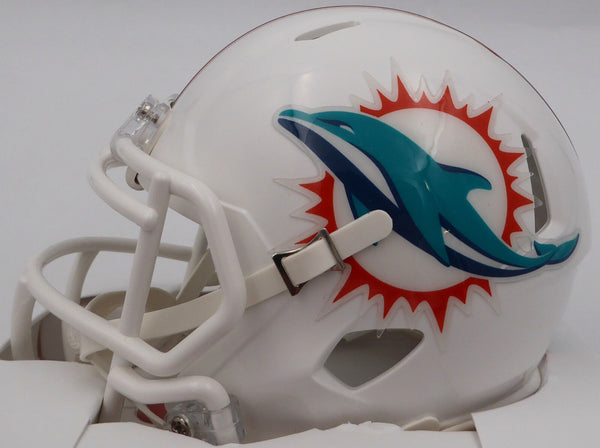 This is a White Speed Mini Helmet that has been hand signed by Raheem Mosert. This item has been certified authentic by Beckett Authentication (BAS) and comes with their tamper-proof QR Code sticker that can be verified on the Beckett-authentication.com.