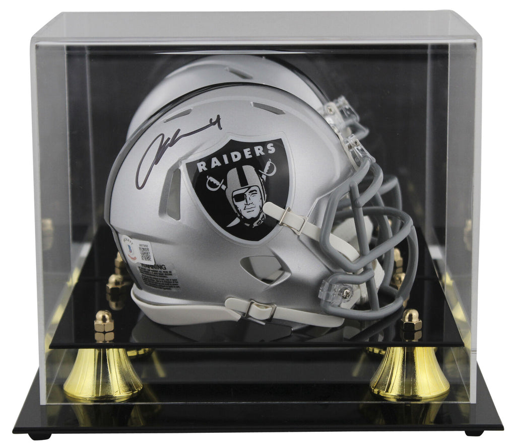 This Autographed Speed Mini Helmet W/ Uv Mirrored Back Acrylic Display Case has been Personally Signed by Aidan O'Connell of the Las Vegas Raiders. This item is 100% Authentic to include a hologram by Beckett Authentication Services. This item will come with an affixed Beckett Authentication Services (BAS) authentication sticker, which includes a scannable QR code to verify authenticity. Please note that Beckett no longer provides serial-numbered COA cards, and the attached BAS sticker will serve as the complete authentication for this item. This is a BAS Witnessed Protection Program item which means a Beckett Authentication Service representative was present when this item was being signed. We conducted an autograph signing with Aidan O'Connell where multiples of the same item were signed. While the photographs are representative of this item, the size, placement and strength of the signature may vary. Each item is hand signed, therefore, each autograph is unique. This item can be verified through BAS Witnessed.