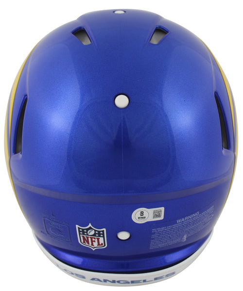This Autographed Authentic Full Size Speed Proline Helmet has been Personally Signed by Aaron Donald of the Los Angeles Rams. This item is 100% Authentic to include a hologram by Beckett Authentication Services. This item will come with an affixed Beckett Authentication Services (BAS) authentication sticker, which includes a scannable QR code to verify authenticity. Please note that Beckett no longer provides serial-numbered COA cards, and the attached BAS sticker will serve as the complete authentication for this item. This is a BAS Witnessed Protection Program item which means a Beckett Authentication Service representative was present when this item was being signed. We conducted an autograph signing with Aaron Donald where multiples of the same item were signed. While the photographs are representative of this item, the size, placement and strength of the signature may vary. Each item is hand signed, therefore, each autograph is unique. This item can be verified through BAS Witnessed.