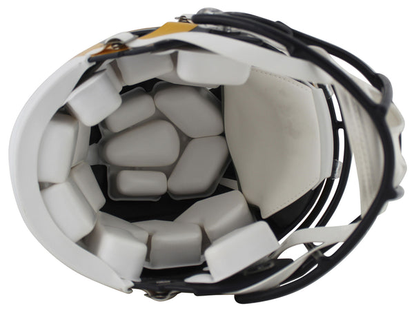 This Autographed 1981-99 Throwback Authentic Full Size Speed Proline Helmet has been Personally Signed by Aaron Donald of the Los Angeles Rams. This item is 100% Authentic to include a hologram by Beckett Authentication Services. This item will come with an affixed Beckett Authentication Services (BAS) authentication sticker, which includes a scannable QR code to verify authenticity. Please note that Beckett no longer provides serial-numbered COA cards, and the attached BAS sticker will serve as the complete authentication for this item. This is a BAS Witnessed Protection Program item which means a Beckett Authentication Service representative was present when this item was being signed. We conducted an autograph signing with Aaron Donald where multiples of the same item were signed. While the photographs are representative of this item, the size, placement and strength of the signature may vary. Each item is hand signed, therefore, each autograph is unique. This item can be verified through BAS Witnessed.