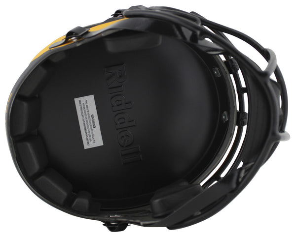 This Autographed Alternate Eclipse Riddell Full Size Speed Rep Helmet W/ Uv Mirrored Back Acrylic Display Case has been Personally Signed by Aaron Donald of the Los Angeles Rams. This item is 100% Authentic to include a hologram by Beckett Authentication Services. This item will come with an affixed Beckett Authentication Services (BAS) authentication sticker, which includes a scannable QR code to verify authenticity. Please note that Beckett no longer provides serial-numbered COA cards, and the attached BAS sticker will serve as the complete authentication for this item. This is a BAS Witnessed Protection Program item which means a Beckett Authentication Service representative was present when this item was being signed. We conducted an autograph signing with Aaron Donald where multiples of the same item were signed. While the photographs are representative of this item, the size, placement and strength of the signature may vary. Each item is hand signed, therefore, each autograph is unique. This item can be verified through BAS Witnessed.