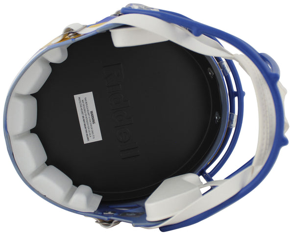 This Autographed Riddell Full Size Speed Rep Helmet has been Personally Signed by Kyren Williams of the Los Angeles Rams. This item is 100% Authentic to include a hologram by Beckett Authentication Services. This item will come with an affixed Beckett Authentication Services (BAS) authentication sticker, which includes a scannable QR code to verify authenticity. Please note that Beckett no longer provides serial-numbered COA cards, and the attached BAS sticker will serve as the complete authentication for this item. We conducted an autograph signing with Kyren Williams where multiples of the same item were signed. While the photographs are representative of this item, the size, placement and strength of the signature may vary. Each item is hand signed, therefore, each autograph is unique. This item can be verified through BAS.