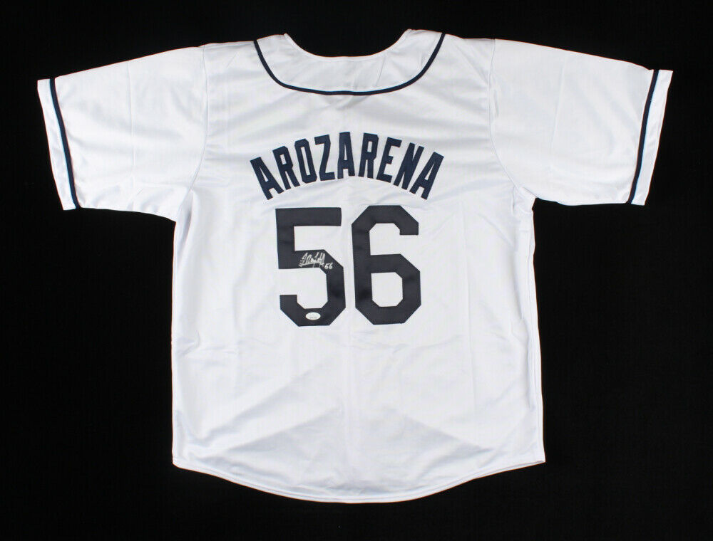 Custom on-field style jersey. Everything is sewn on, size XL. Has been hand-signed by Randy Arozarena.The lot / autograph(s) includes an official James Spence Authentication (JSA) hologram and matching COA for authenticity purposes. The signing of this item was witnessed by JSA.Authentication: JSA COACustom on-field style jerseys are a more affordable option for autograph seekers. These jerseys do not have any brand name or tags and are made in the Philippines. They feature stitched on names and numbers and are made to look very similar to the on-field jerseys that the players wear. These custom jerseys are very commonly used in the memorabilia industry.