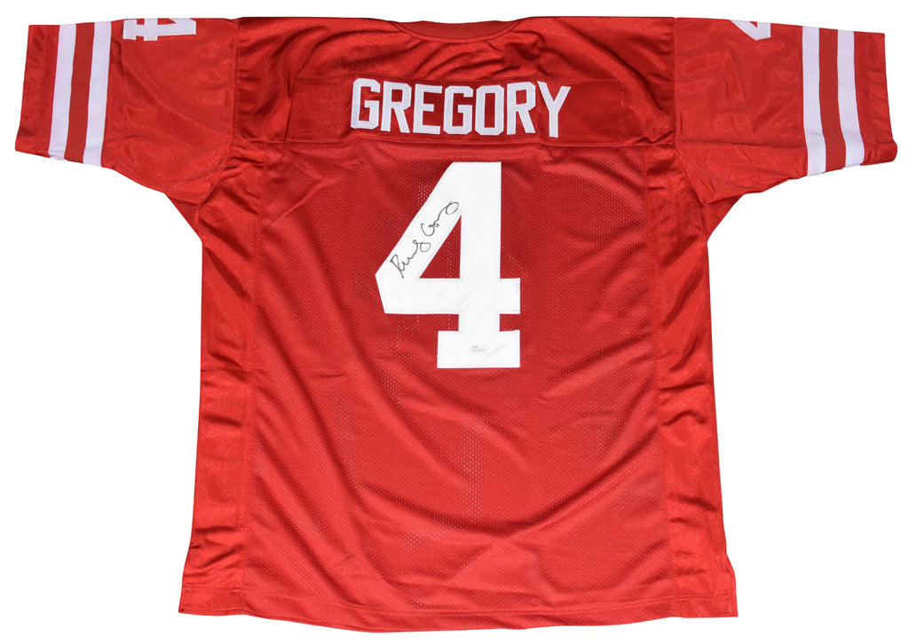 Randy Gregory, former All-American defensive end for the Nebraska Cornhuskers, has hand signed this red custom jersey at a private signing. Jersey is size XL and all letters/numbers are sewn-on. This item comes with a certificate of authenticity (COA) from JSA - James Spence Authentication and was signed in the presence of one of their representatives. You will receive a serial-numbered COA along with a matching serial-numbered sticker on the jersey. The authenticity can be verified online by entering the serial number.Item pictured may not be the exact item you will receive. It will be similar quality, and we guarantee your satisfaction.