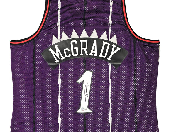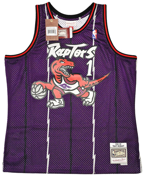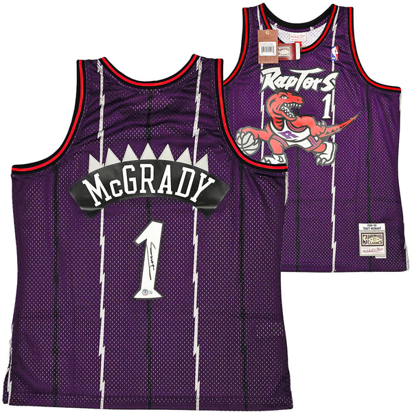 This is a Purple Authentic Mitchell & Ness Toronto Raptors 1998-99 HWC Swingman Jersey that has been hand signed by Tracy McGrady. This jersey is Size XL. This item has been witnessed and certified authentic by Beckett Authentication (BAS) and comes with their tamper-proof witness sticker.
