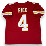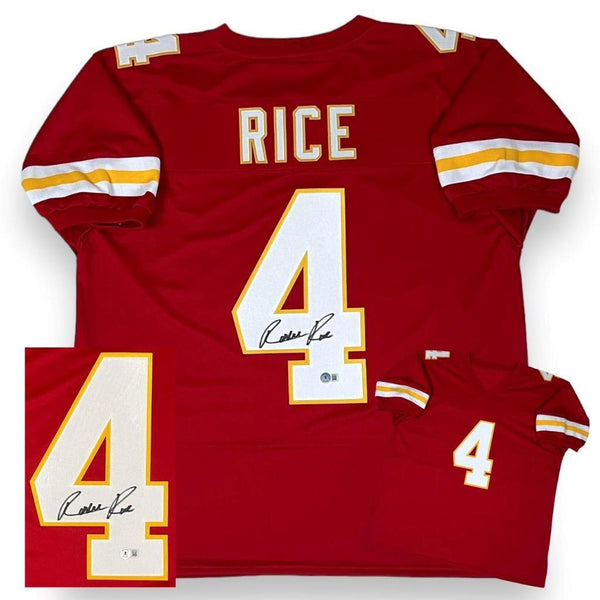 This signed item is brand new without tags or logos. This jersey is custom sewn in a size Large / XL. All the letters and numbers are sewn on! This item will make a great gift or a great addition to any collection at an AFFORDABLE PRICE! ATHLETE: Rashee Rice ITEM: Custom Sewn Jersey AUTHENTICATION: This item comes with a Beckett serial #'ed hologram affixed to the item. To ensure authenticity, the hologram can be reviewed online. This process helps to ensure that the product purchased is authentic and eliminates any possibility of duplication or fraud. NOTE: All of our autographed jerseys are custom jerseys, unless otherwise noted. Our custom jerseys are NON-BRANDED, have NO logos, NO tags, NO patches, NO emblems. All letters and numbers are SEWN-ON. The non-branded jerseys are made specifically for the player(s) to sign, for collectible purposes.