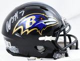 This is a hand autograph of Rashod Bateman of the Baltimore Ravens on a Riddell Football Speed Mini Helmet. This item has a Beckett Witnessed Authentication, which comes with a numbered hologram and a QR code for verification. You can view this item on the Beckett Authentication website and it shows when and where the item was signed. It was signed either at a public autograph appearance or a private signing. This is a stock photo of the item. Although you may not receive this exact item, the item you receive is virtually identical and brand new in great shape. This is a hand autograph of Rashod Bateman of the Baltimore Ravens on a Riddell Football Speed Mini Helmet. This item has a Beckett Witnessed Authentication, which comes with a numbered hologram and a QR code for verification. You can view this item on the Beckett Authentication website and it shows when and where the item was signed. It was signed either at a public autograph appearance or a private signing. This is a stock photo of the item. Although you may not receive this exact item, the item you receive is virtually identical and brand new in great shape.