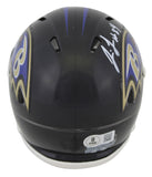 This Autographed Speed Mini Helmet has been Personally Signed by Jermaine Lewis of the Baltimore Ravens. This item is 100% Authentic to include a hologram by Beckett Authentication Services. This item will come with an affixed Beckett Authentication Services (BAS) authentication sticker, which includes a scannable QR code to verify authenticity. Please note that Beckett no longer provides serial-numbered COA cards, and the attached BAS sticker will serve as the complete authentication for this item. This is a BAS Witnessed Protection Program item which means a Beckett Authentication Service representative was present when this item was being signed. We conducted an autograph signing with Jermaine Lewis where multiples of the same item were signed. While the photographs are representative of this item, the size, placement and strength of the signature may vary. Each item is hand signed, therefore, each autograph is unique. This item can be verified through BAS Witnessed.